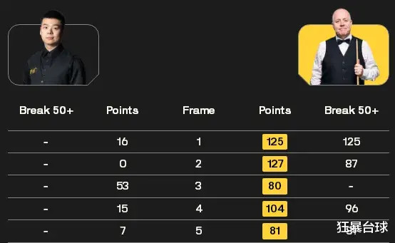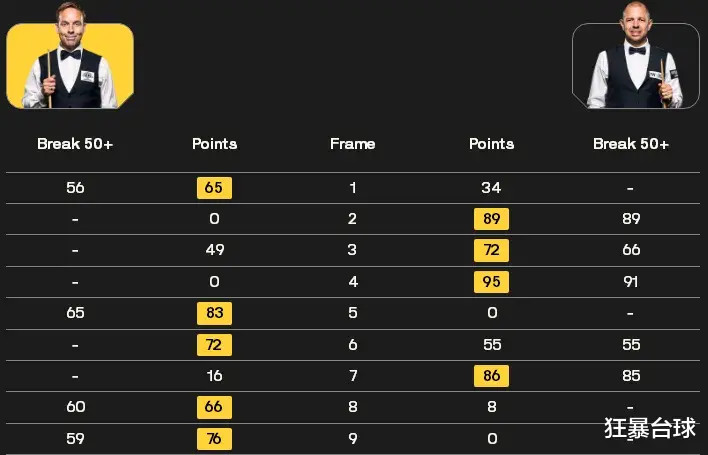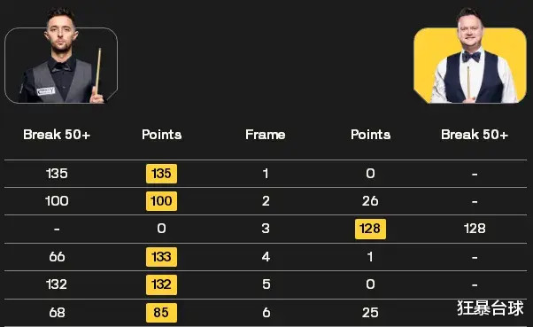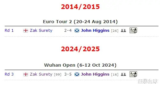 希金斯苏尔蒂双方过往交战也是两次,希金斯全胜,本赛季的武汉公开赛32进16,希金斯5-3赢了苏尔蒂。