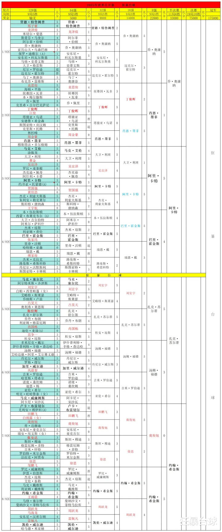 完整签表: